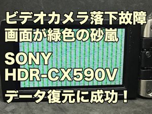 落下故障 液晶画面が緑色の砂嵐 SONYハンディカムHDR-CX590V データ復旧