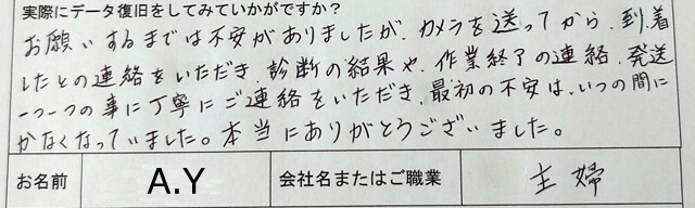 ビデオカメラ データ復旧専門店のコメント